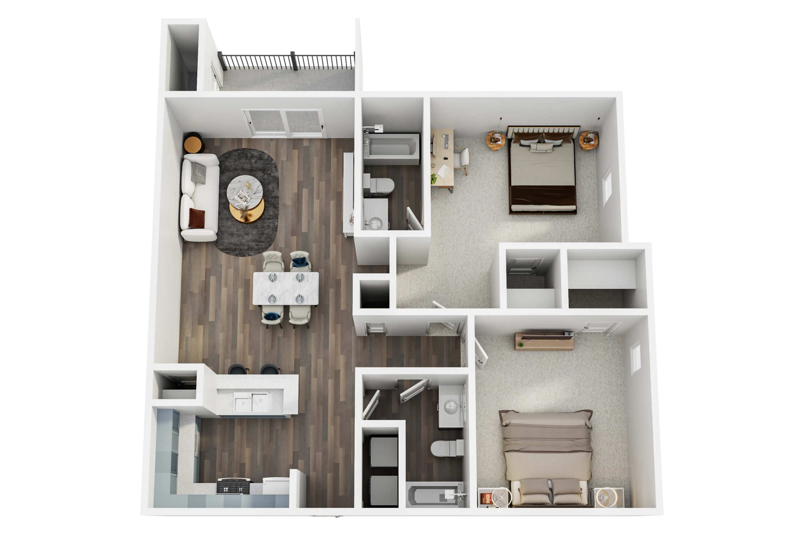 Our apartments in Round Rock, TX offer the perfect blend of comfort, convenience, and modern design. Each home features wood-style flooring, plush bedroom carpeting, in-home washer and dryer, and private patios or balconies for outdoor relaxation. Select floor plans include built-in desks and flexible layouts—ideal for remote work or extra storage—while every space is crafted for easy living and effortless style.